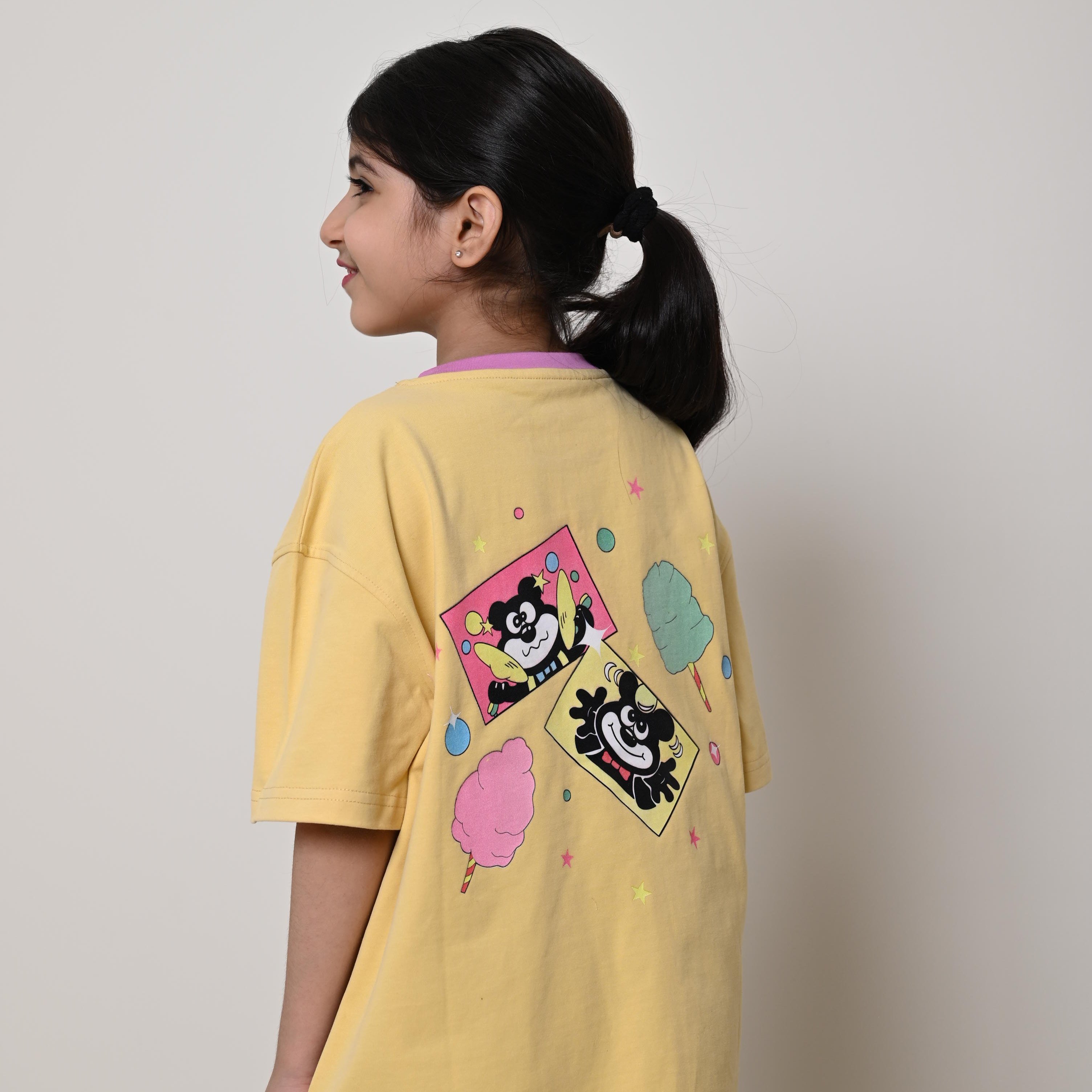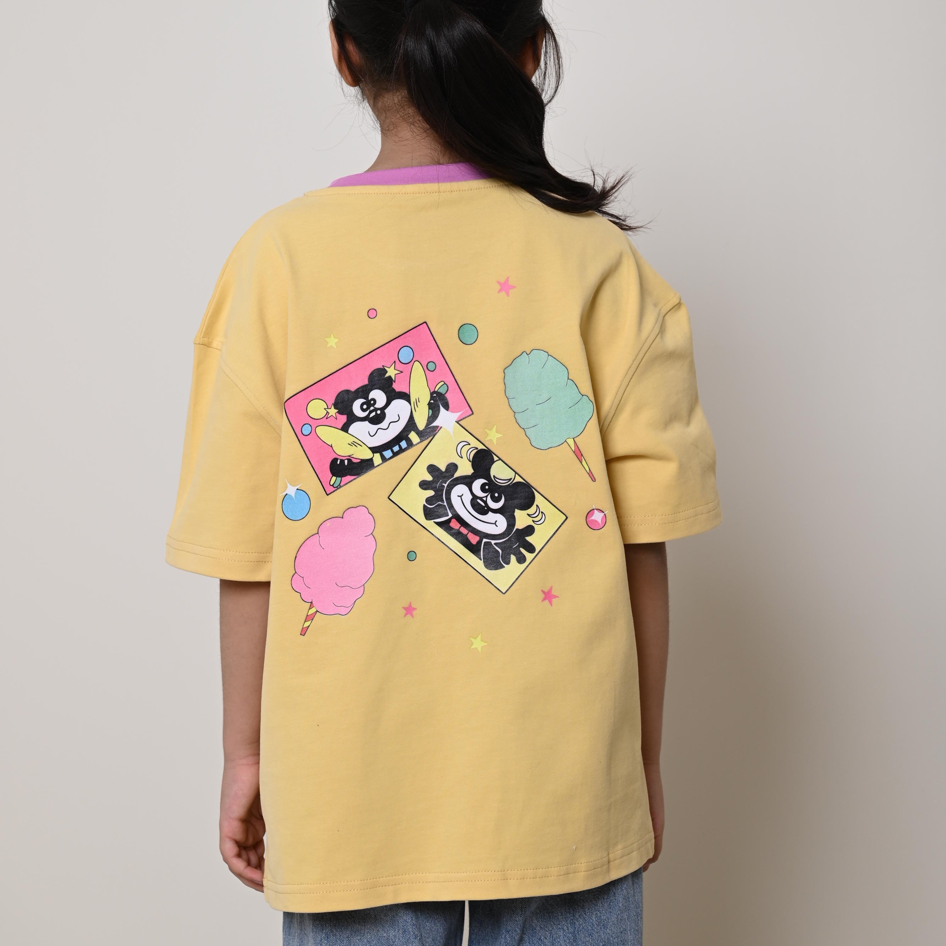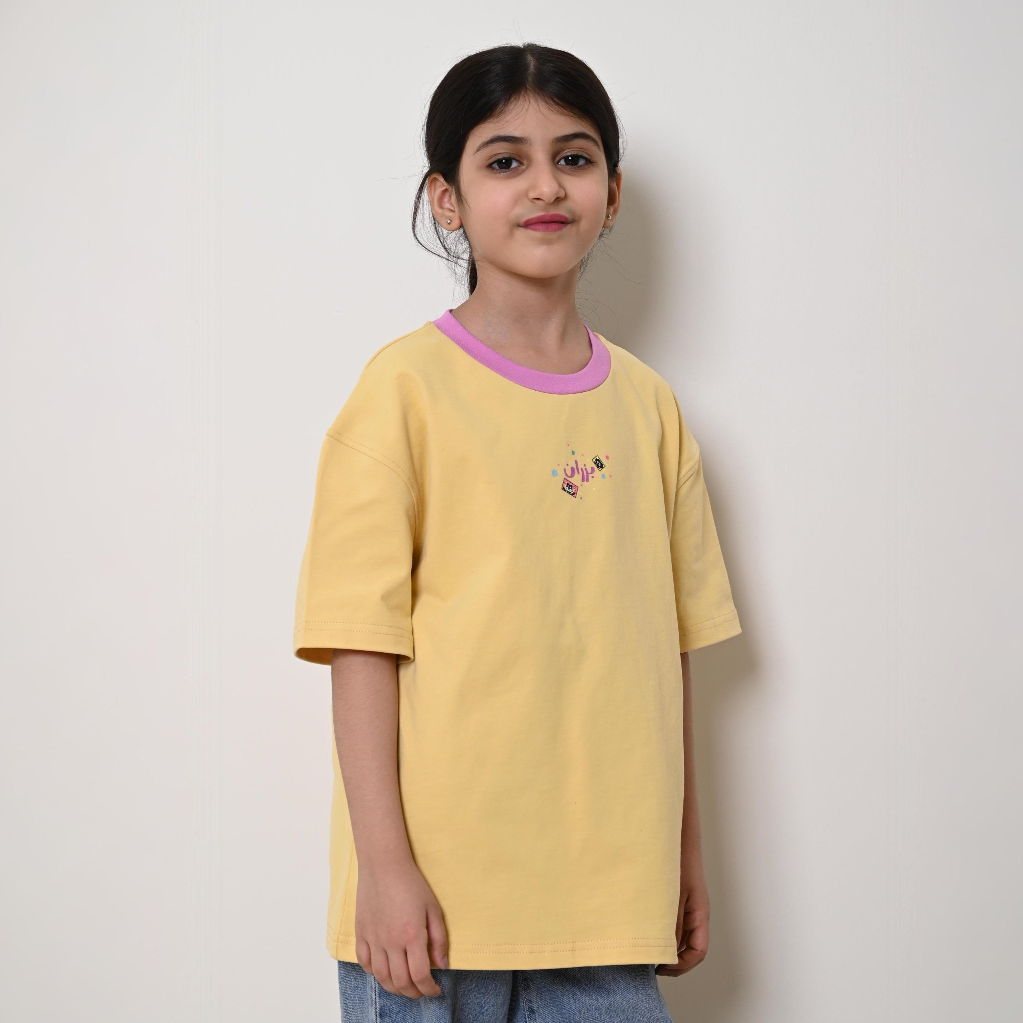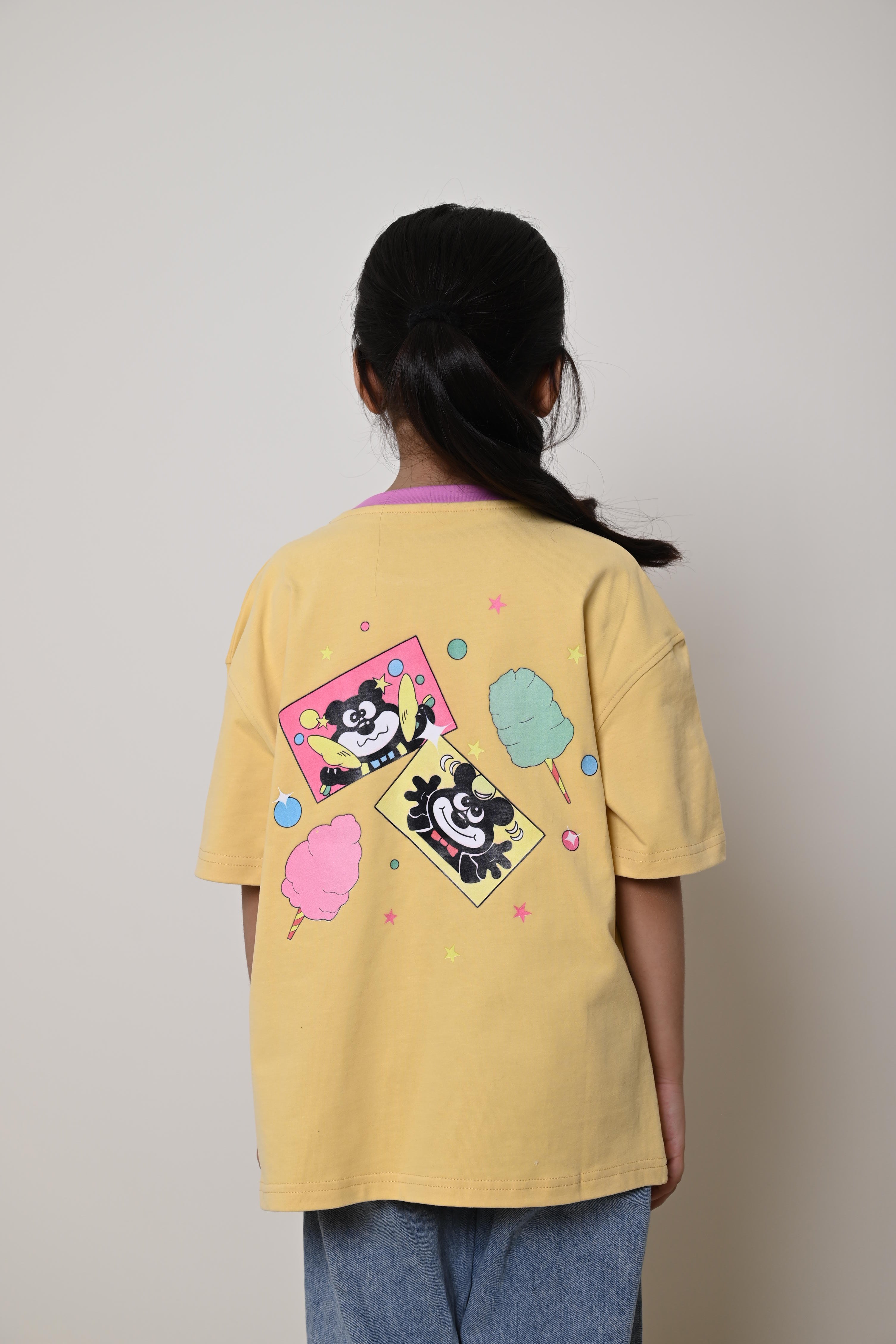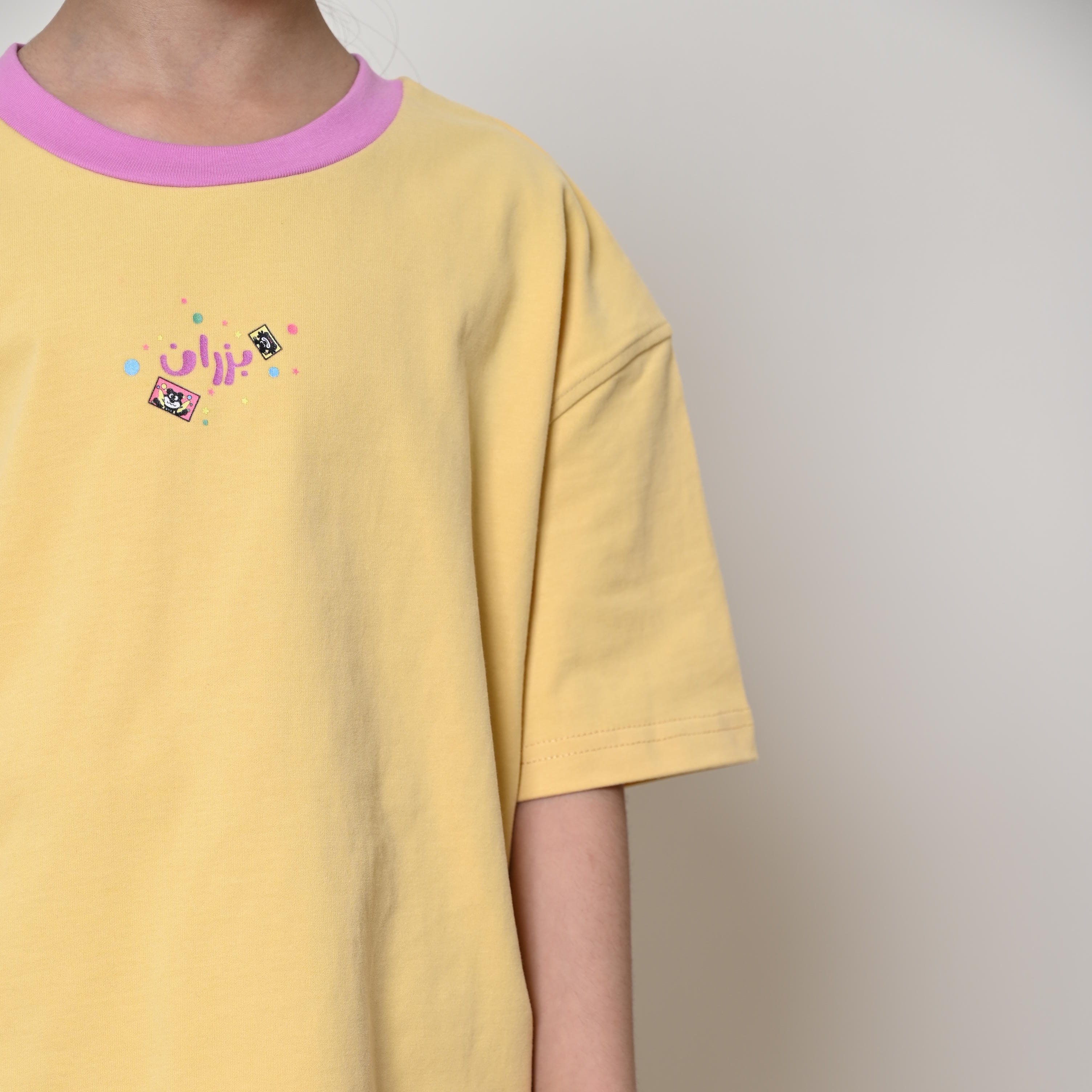 أضيفي لمسة من الذكريات الجميلة لإطلالة طفلتك مع تيشيرت علكة بزران بلونه الأصفر المبهج وتصميمه المستوحى من “أيام الطيبين” مع لمسة عصرية.