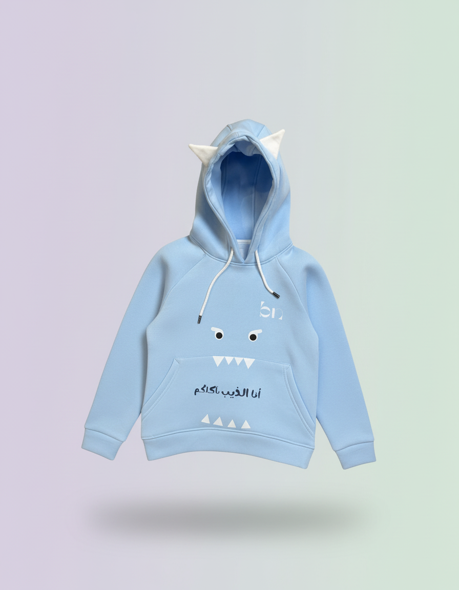 يقدم متجر نوستالجيك قطعة فنية فريدة من نوعها: هودي الذيب الأزرق، وهو تصميم مبتكر يحول الهودي العادي إلى شخصية مرحة ومحببة للأطفال.